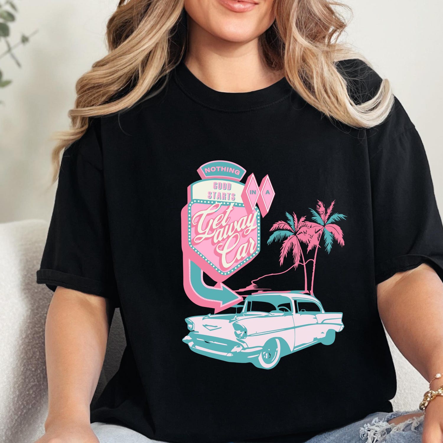 Getaway Car Shirt, Retro Motel Aesthetic T-Shirt, Groovy Beach Tee, Nothing Good Happens, Country Concert Gift Cowgirl Tee Western Shirt