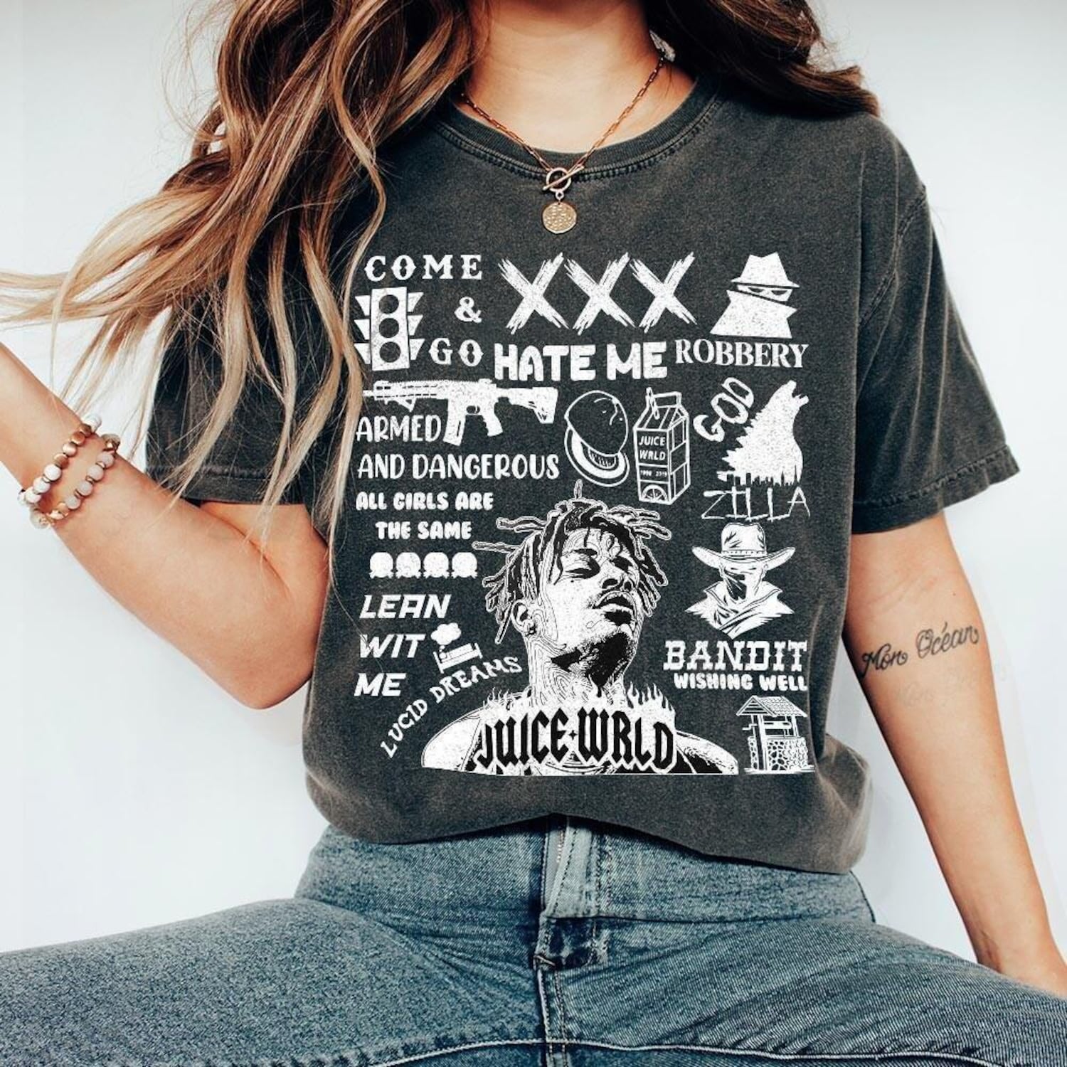 Juice WRLD Vintage Doodle Shirt, 90s Bootleg Rap Graphic Tee, Retro Hip-Hop Fan Gift, Unisex Streetwear T-Shirt