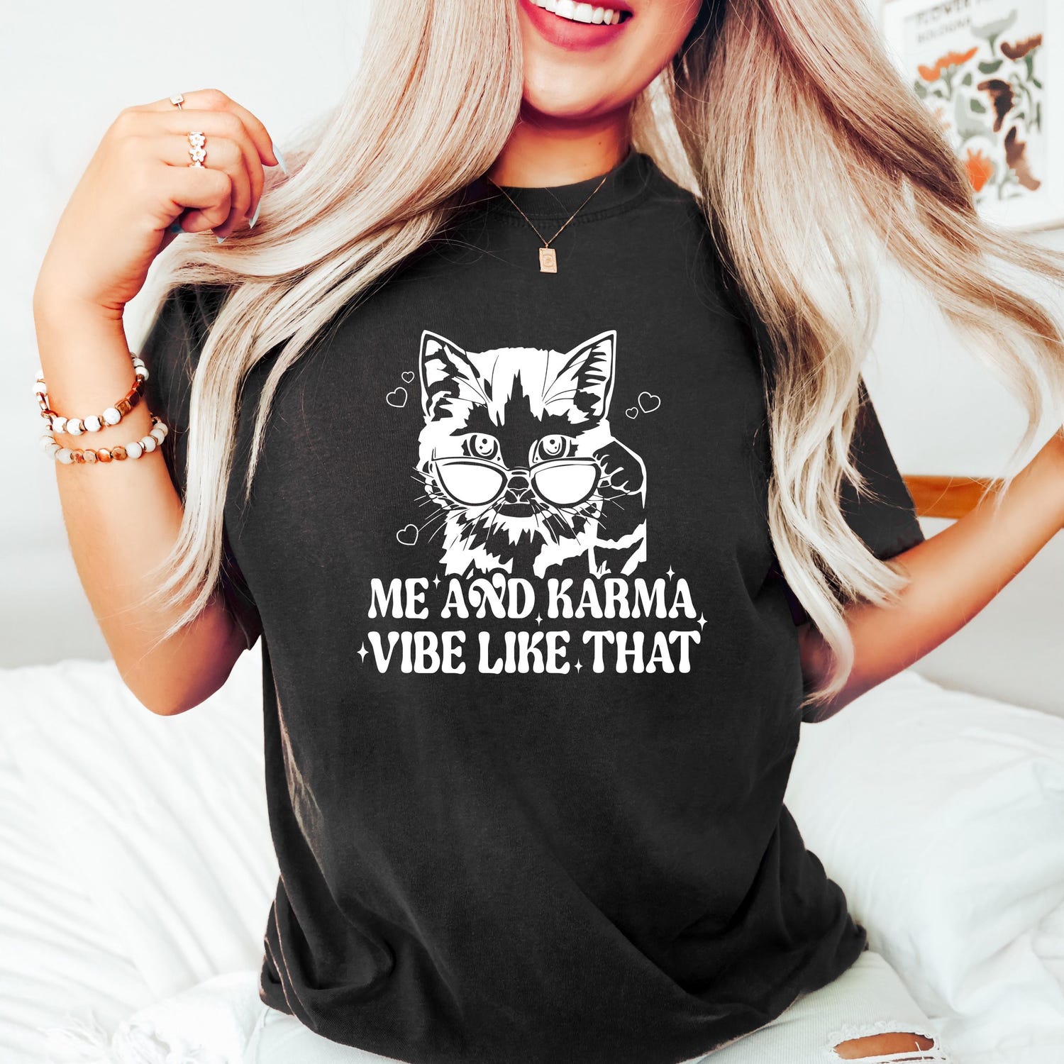 Karma Is A Cat Shirt, Me And Karma Vibe Like That Shirt, Lyric Merch, Midnights Album Inspired Tee, Concert Shirt, Minimal Shirt, Women Tees