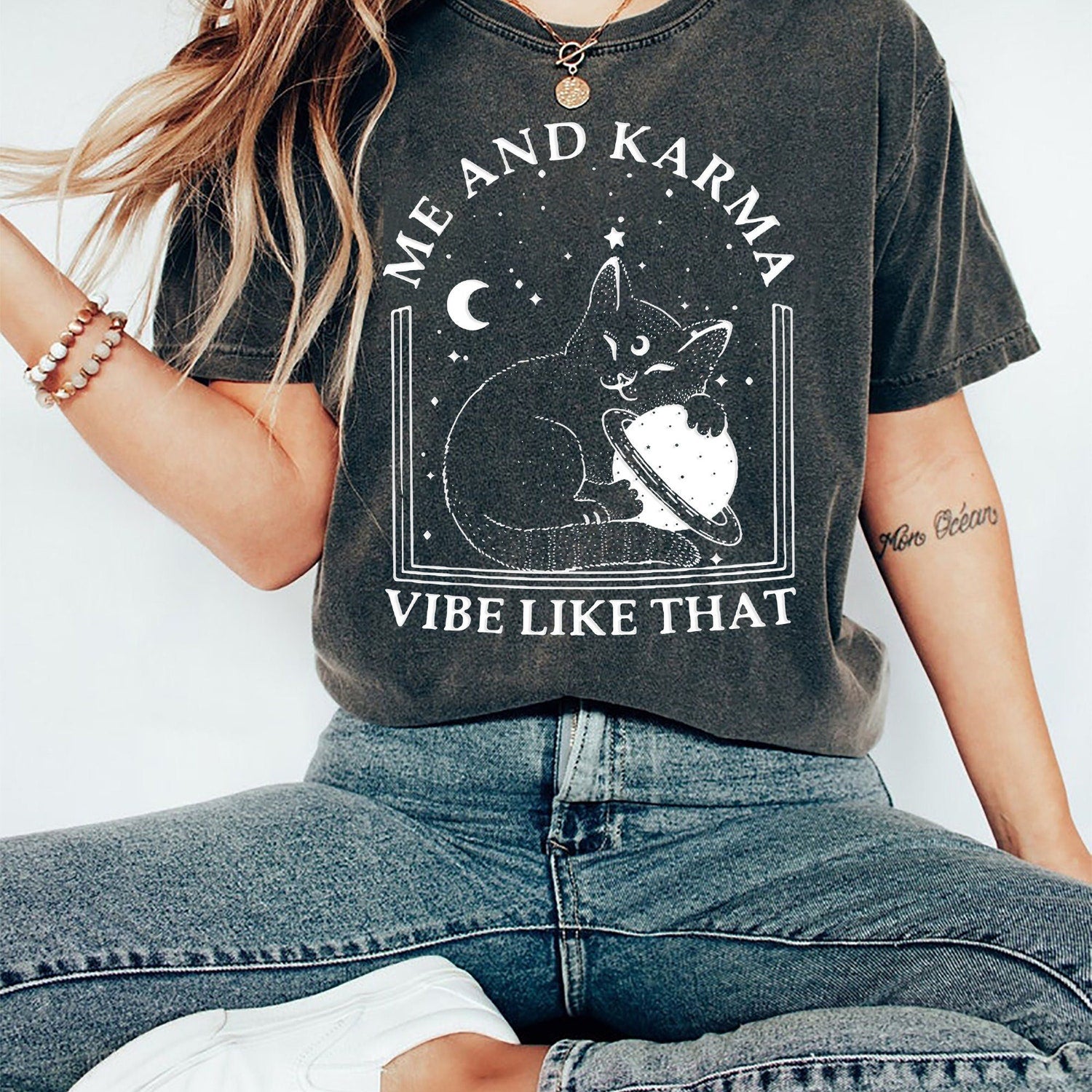 Me And Karma Vibe Like That Funny Cat Paw Comfort Colors T-Shirt | Karma is a Cat T-Shirt | Cat Lover Gift