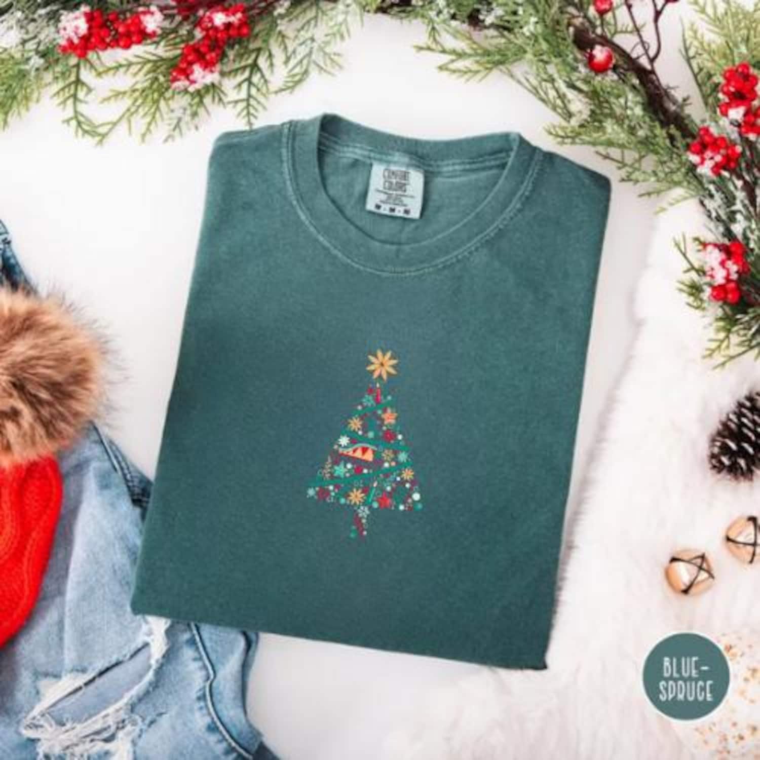 Minimal Christmas Tree Shirt, Colorful Holiday Tee, Modern Xmas Graphic Shirt, Scandinavian Festive Top, Cozy Winter Gift Tee