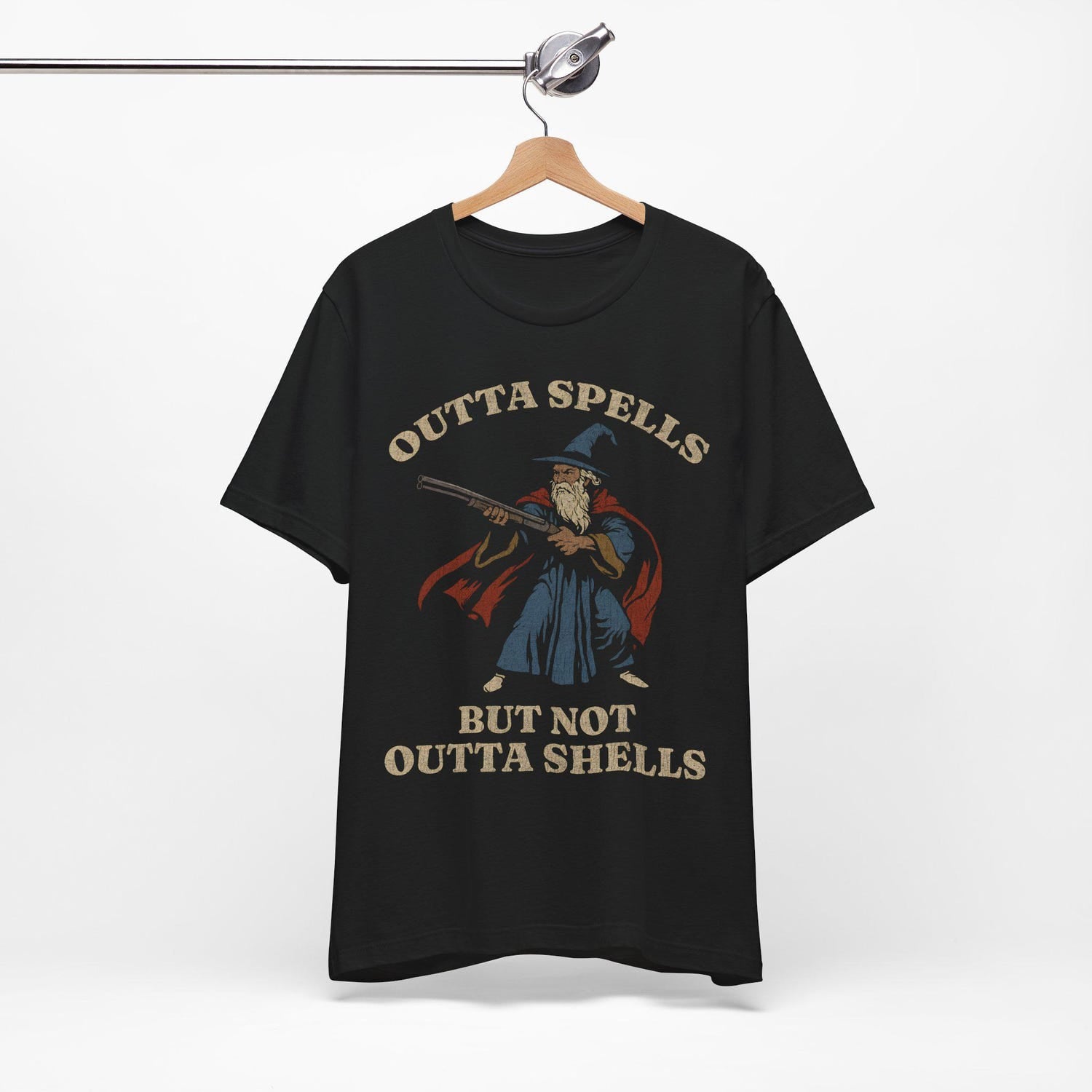 Outta Spells But Not Outta Shells Tee | Wizard Fantasy Meme Shirt'4422801075