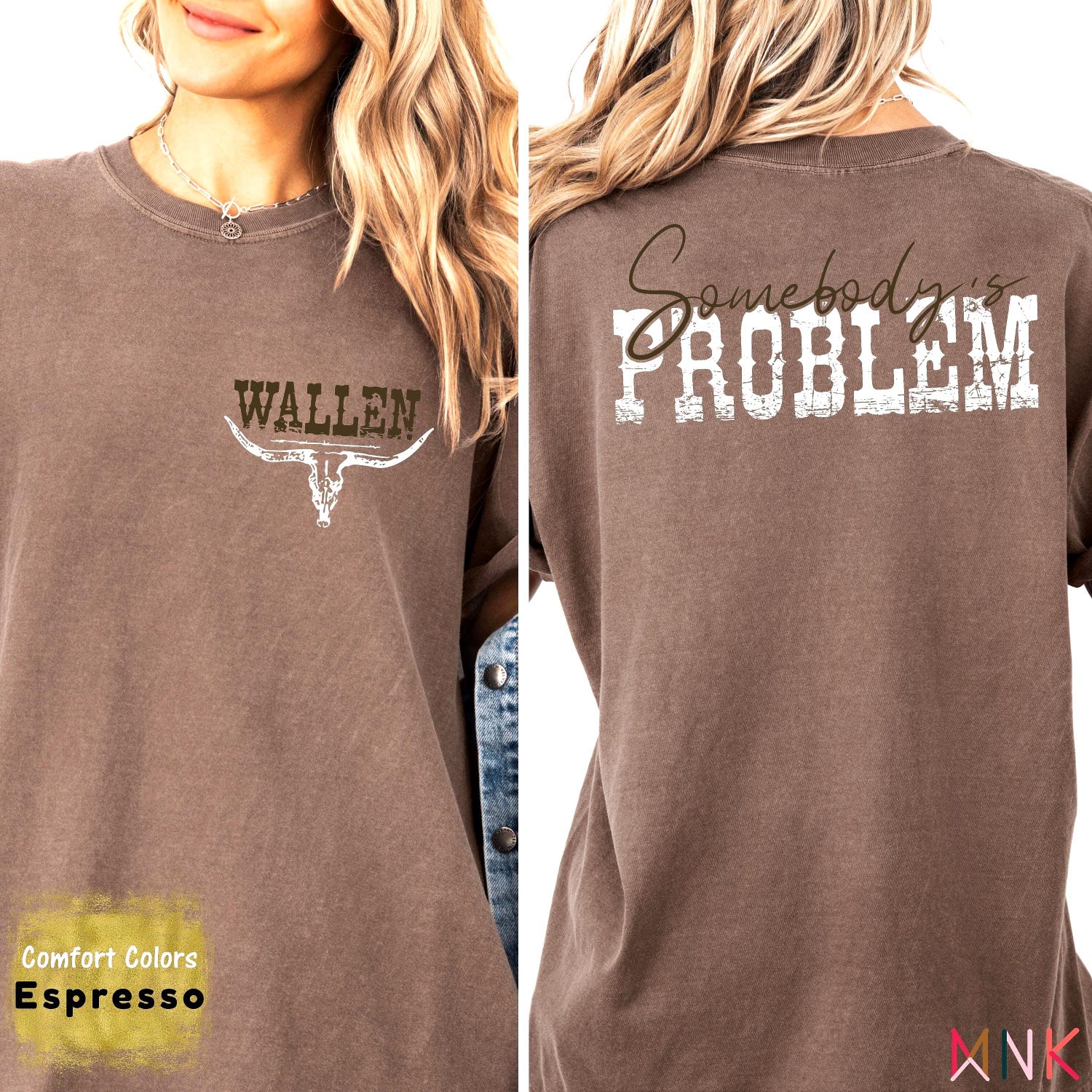 Somebody's Problem Bull Skull Tee: Double Sided Country Concert Shirt'4307896904
