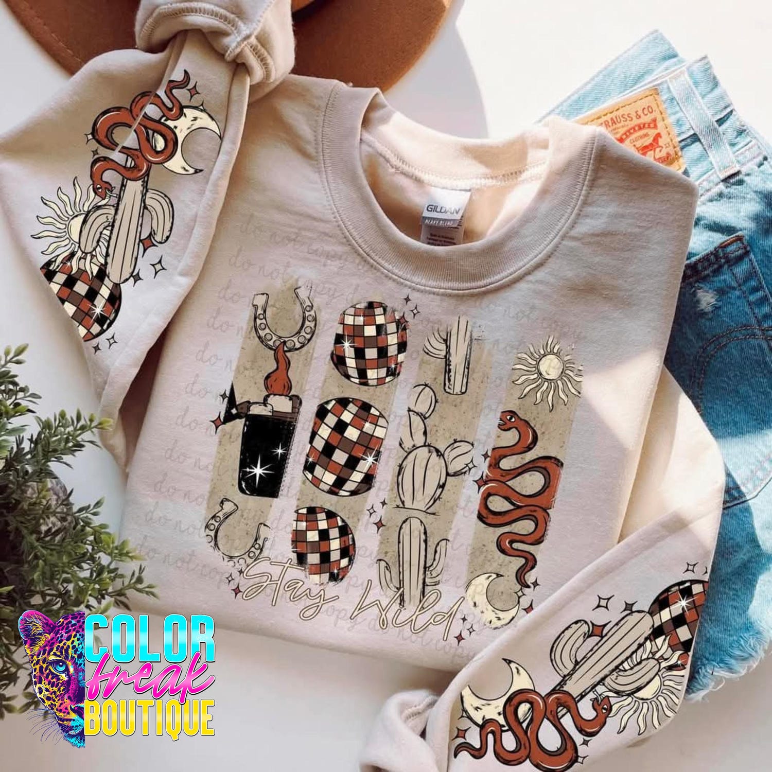 Stay Wild Sweatshirt | Funny Gildan | Cowgirl Pullover | Snake Moon Cactus Graphic | Boho Western Oversized Crewneck | Hot Mess Rodeo Energy
