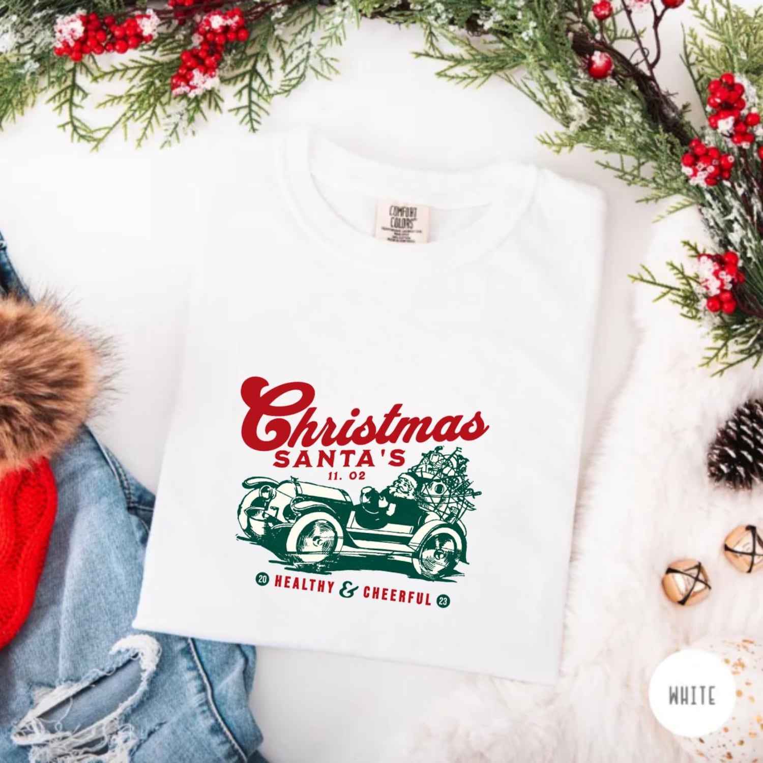 Vintage Santa Car Christmas Shirt, Retro Holiday Graphic Tee, Classic Xmas Gift, Santa Driving Car T-Shirt, Festive Unisex Top