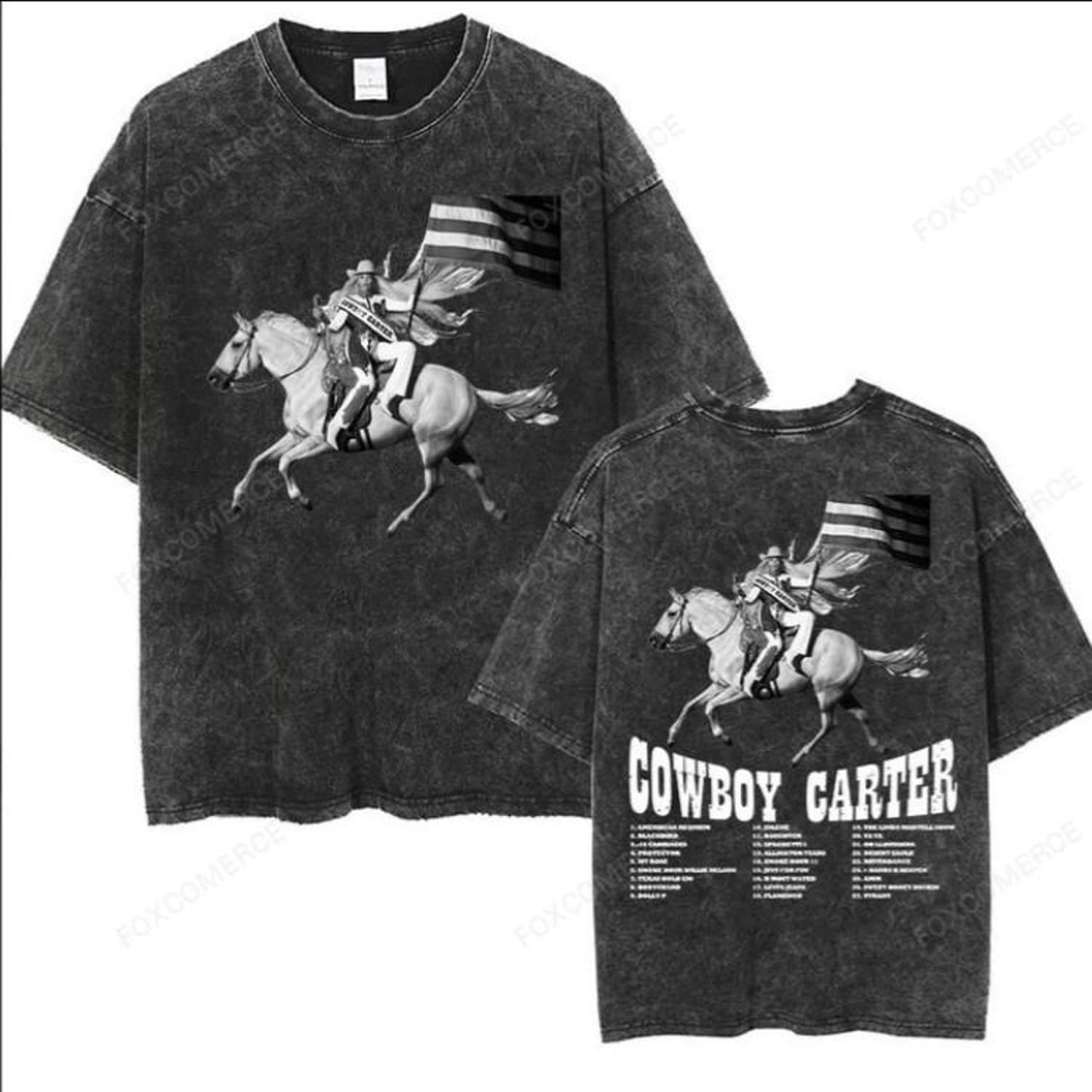 Vintage Washed Beyonc Cowboy Carter Album 2025 Print T-Shirt Retro Graphic Tee for Music Fans