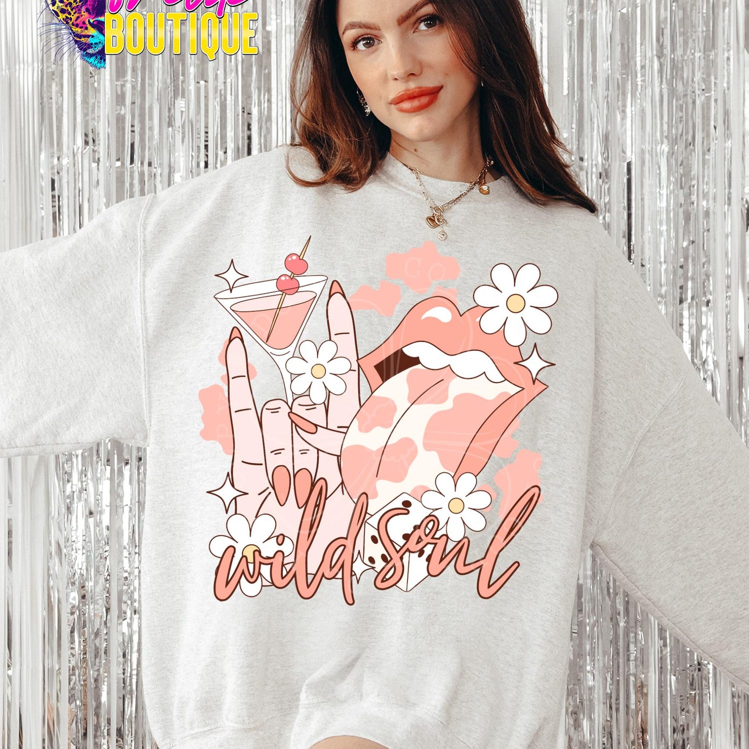 Wild Soul Crew | Punchy Cowgirl | Cow Print | Lips | Floral Crewneck Shirt, Sweatshirt, Hoodie